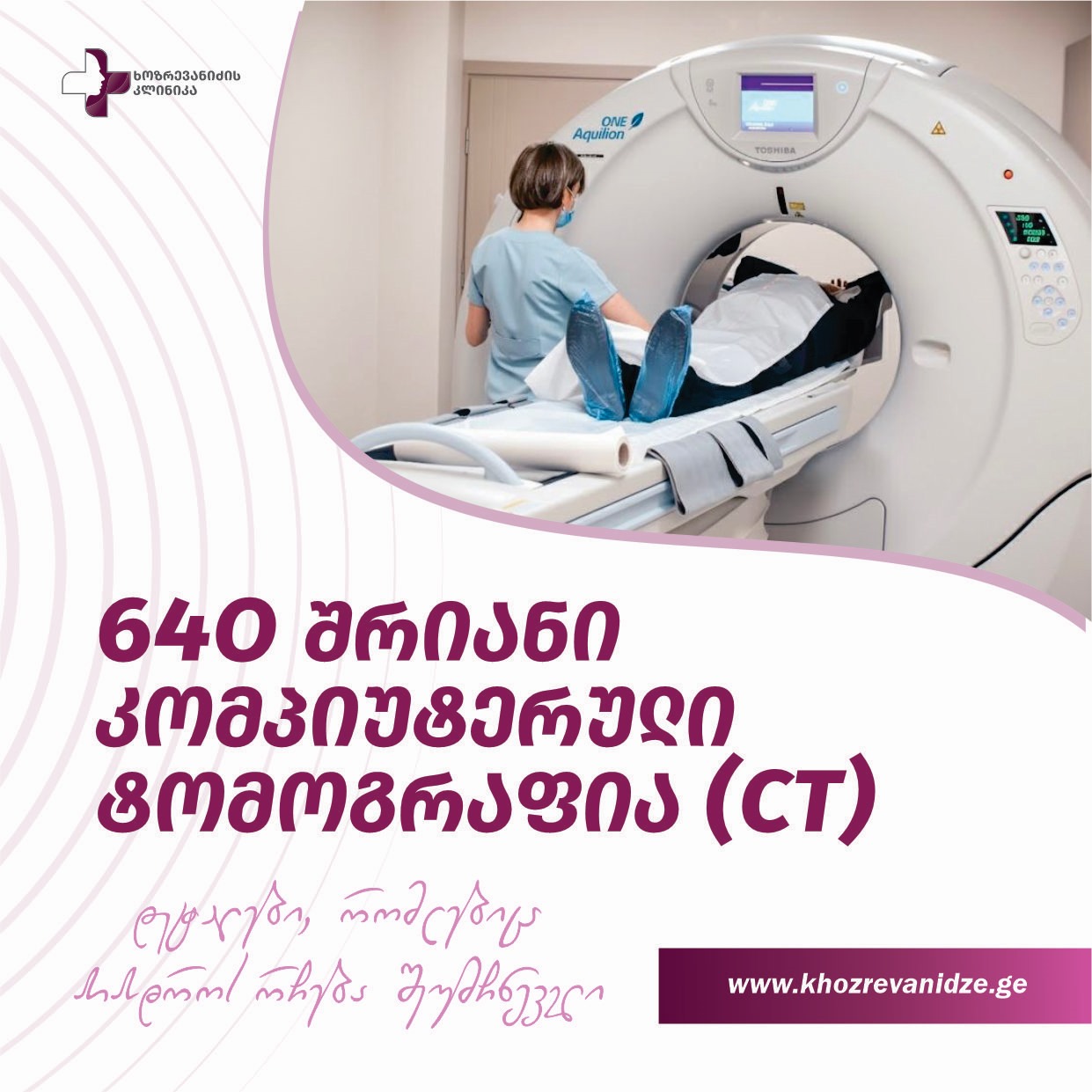 ხოზრევანიძის კლინიკის 640-შრიანი ტომოგრაფი წარმოადგენს მსოფლიო დონის ტექნოლოგიას, რომელიც აერთიანებს სისწრაფეს, სიზუსტესა და პაციენტის უსაფრთხოებას. მისი ძირითადი უპირატესობები მოიცავს: